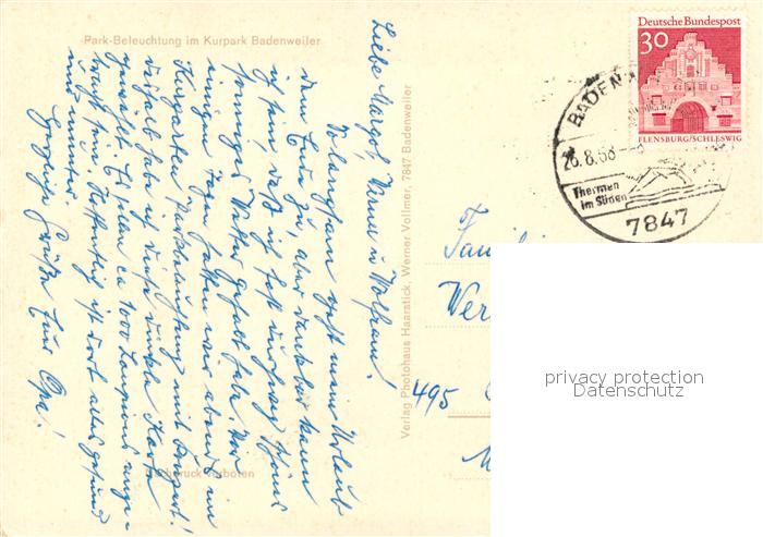 73020087 alte Postkarte BADENWEILER BW Park Beleuchtung im Kurpark postalisch gelaufen Erhaltung siehe scans [WerneD78] KatCode: 11110008315007