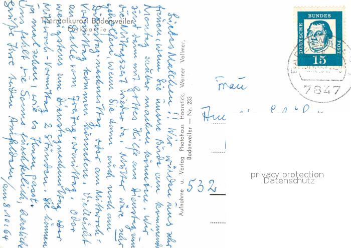 72899633 alte Postkarte BADENWEILER BW Parkpartie postalisch gelaufen Erhaltung siehe scans [PaolaD17] KatCode: 11110008315007