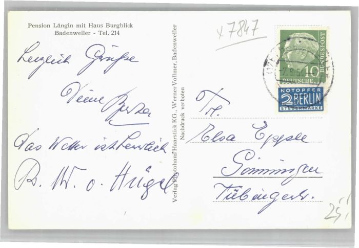 40728503 BADENWEILER BW Pension Laengin Haus Burgblick postalisch gelaufen Alte Ansichtskarte Postkarte alte Postkarte Katcode 11110008315007
