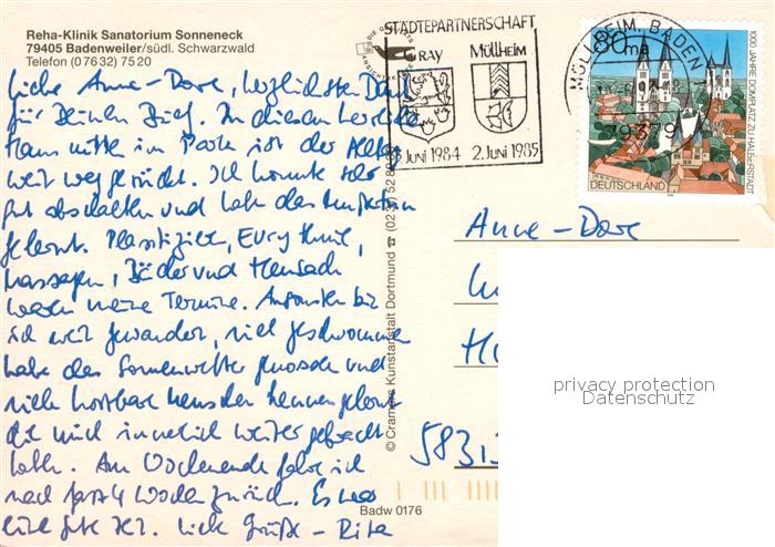 73717696 BADENWEILER BW Reha Klinik Sanatorium Sonneneck Fliegeraufnahme postalisch gelaufen Erhaltung siehe scans [WerneD78] alte Postkarte Wern Katcode 11110008315007