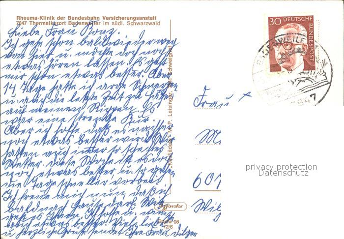 71929490 alte Postkarte BADENWEILER BW Rheuma Klinik Bundesbahn Versicherungsanstalt postalisch gelaufen Erhaltung siehe scans KatCode: 11110008315007