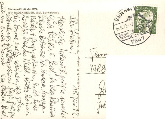 73916679 BADENWEILER BW Rheuma Klinik der BVA Fliegeraufnahme postalisch gelaufen Erhaltung siehe scans [WerneD78] alte Postkarte Wern Katcode 11110008315007