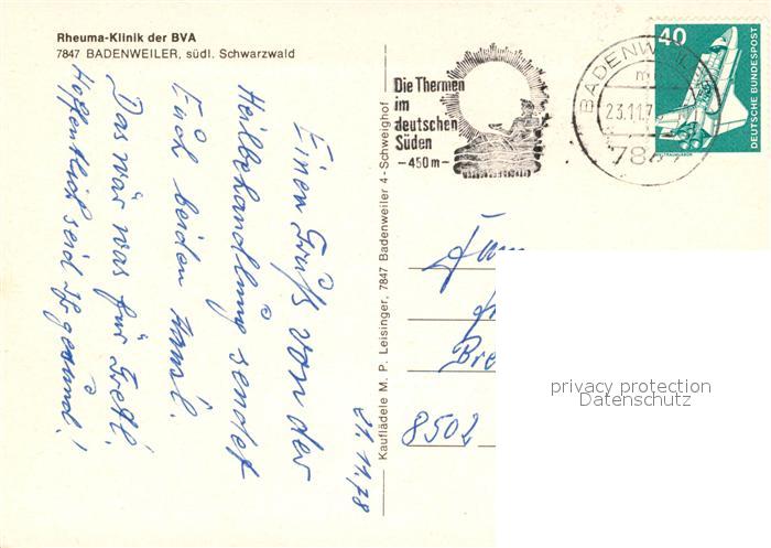 73105535 alte Postkarte BADENWEILER BW Rheuma Klinik der BVA Fliegeraufnahme postalisch gelaufen Erhaltung siehe scans [WerneD78] KatCode: 11110008315007