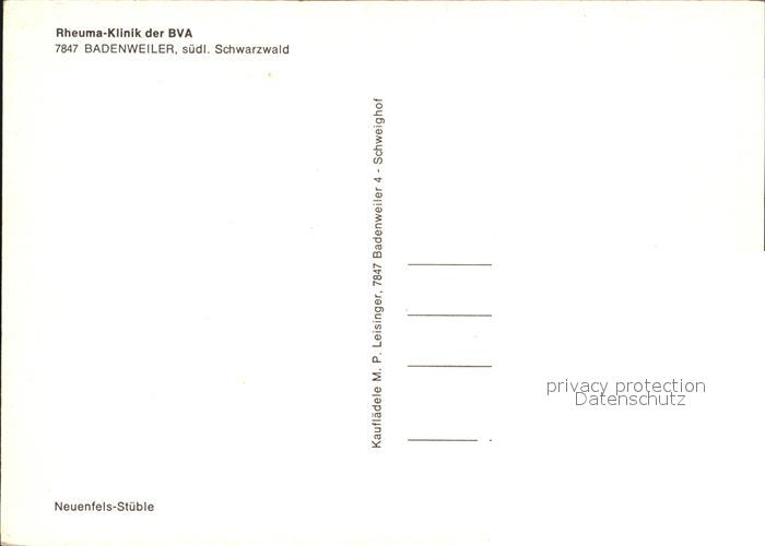 72425969 BADENWEILER BW Rheuma Klinik der BVA Neuenfels Stueble Thermalkurort Schwarzwald postalisch nicht gelaufen Erhaltung siehe scans KatCode: 11110008315007
