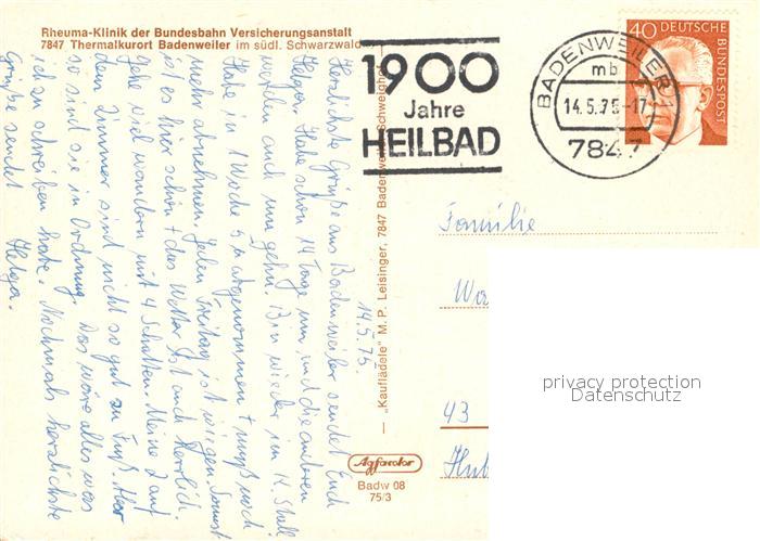73091569 alte Postkarte BADENWEILER BW Rheumaklinik Bundesbahn postalisch gelaufen Erhaltung siehe scans [KathaD81] KatCode: 11110008315007