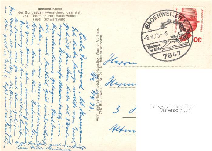 73688395 BADENWEILER BW Rheumaklinik der BVA Thermalkurort im Schwarzwald postalisch gelaufen Erhaltung siehe scans [FriedD77] alte Postkarte Frie Katcode 11110008315007