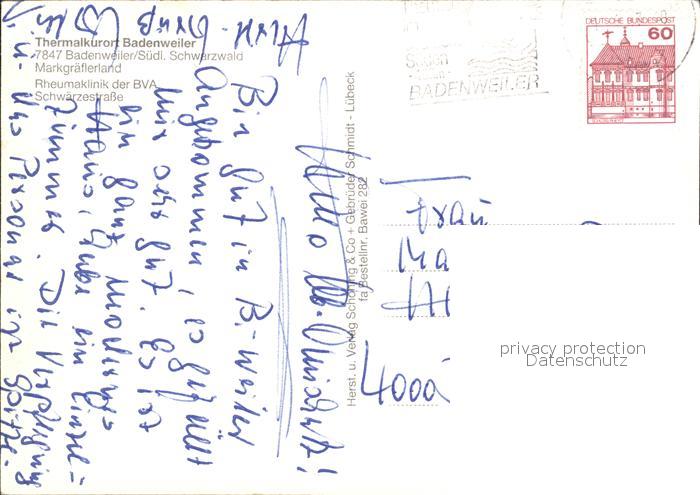 72309309 alte Postkarte BADENWEILER BW Rheumaklinik postalisch gelaufen Erhaltung siehe scans KatCode: 11110008315007
