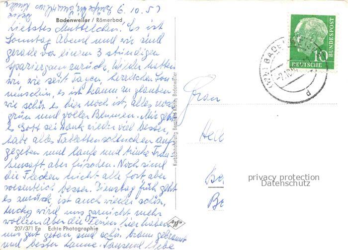 74039805 alte Postkarte BADENWEILER BW Roemerbad Kurort im Schwarzwald postalisch gelaufen Erhaltung siehe scans [FriedD77] KatCode: 11110008315007