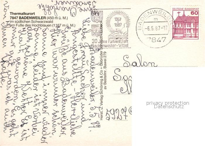 72932523 alte Postkarte BADENWEILER BW Ruine Kurhaus Panorama Kurpark Fontaene Schwimmbad postalisch gelaufen Erhaltung siehe scans [WerneD78] KatCode: 11110008315007