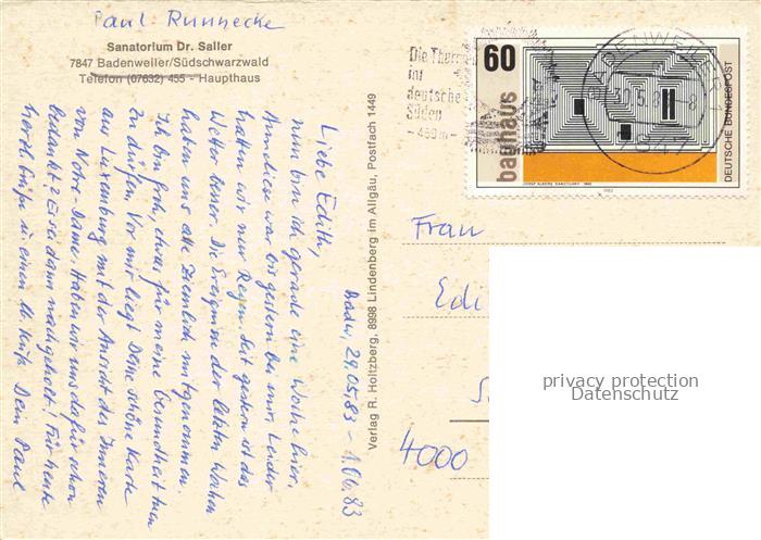 74110138 alte Postkarte BADENWEILER BW Sanatorium Dr. Saller postalisch gelaufen Erhaltung siehe scans [IrynaD87] KatCode: 11110008315007