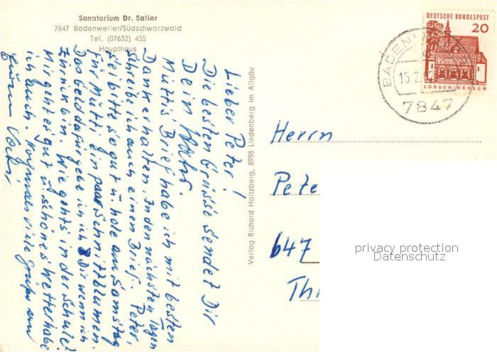 73052110 alte Postkarte BADENWEILER BW Sanatorium Dr. Saller postalisch gelaufen Erhaltung siehe scans [NatalD47] KatCode: 11110008315007