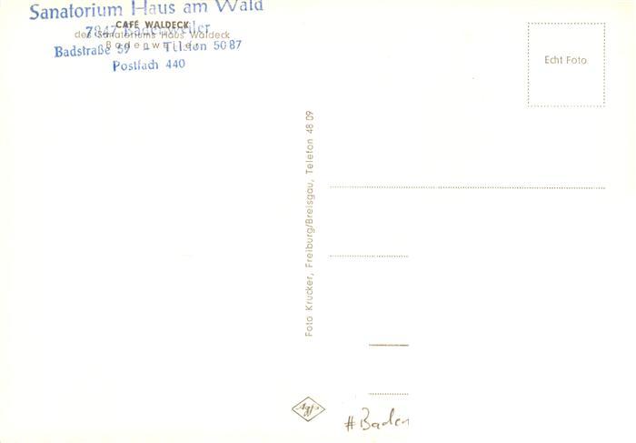 73888451 BADENWEILER BW Sanatorium Haus am Wald postalisch nicht gelaufen Erhaltung siehe scans [FriedD77] Frie Katcode 11110008315007