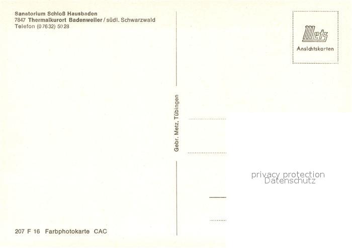 73654368 BADENWEILER BW Sanatorium Schloss Hausbaden postalisch nicht gelaufen Erhaltung siehe scans [WerneD78] Wern Katcode 11110008315007