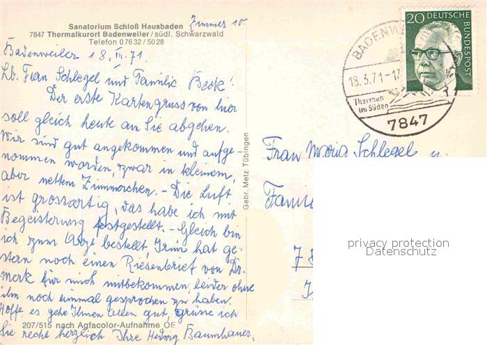 72727264 alte Postkarte BADENWEILER BW Sanatorium Schloss Hausbaden postalisch gelaufen Erhaltung siehe scans [LiesaD40] KatCode: 11110008315007