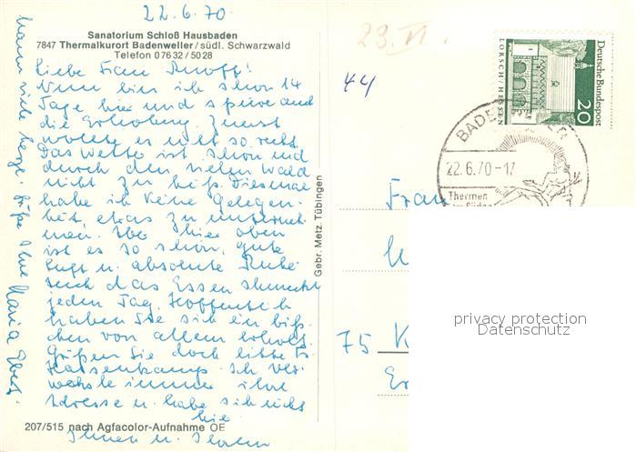 72942971 alte Postkarte BADENWEILER BW Sanatorium Schlss Hausbaden postalisch gelaufen Erhaltung siehe scans [KathaD81] KatCode: 11110008315007