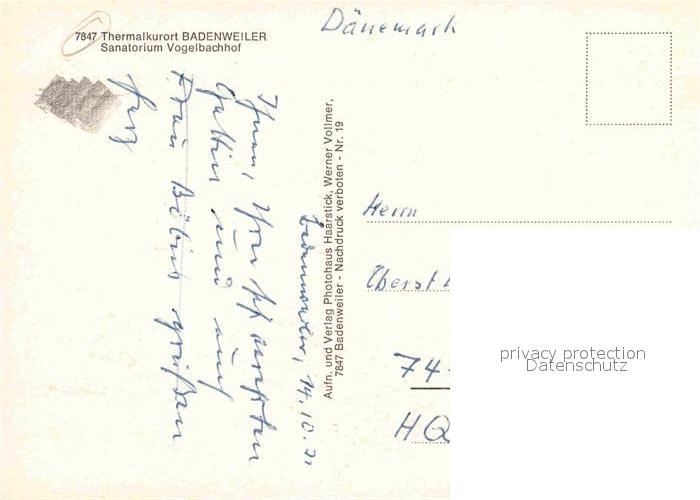 72780128 BADENWEILER BW Sanatorium Vogelbachhof postalisch nicht gelaufen Erhaltung siehe scans [FriedD77] KatCode: 11110008315007
