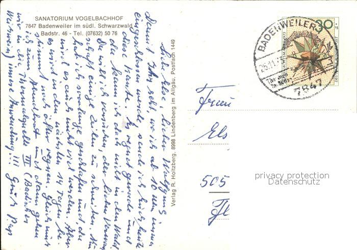 72463007 alte Postkarte BADENWEILER BW Sanatorium Vogelbachhof postalisch gelaufen Erhaltung siehe scans KatCode: 11110008315007