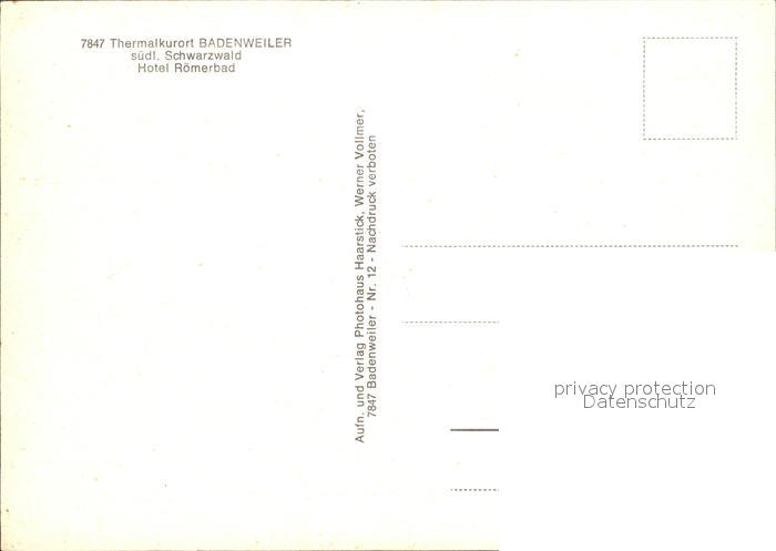 72413768 BADENWEILER BW Schwarzwald Thermalkurort Hotel Roemerbad postalisch nicht gelaufen Erhaltung siehe scans KatCode: 11110008315007