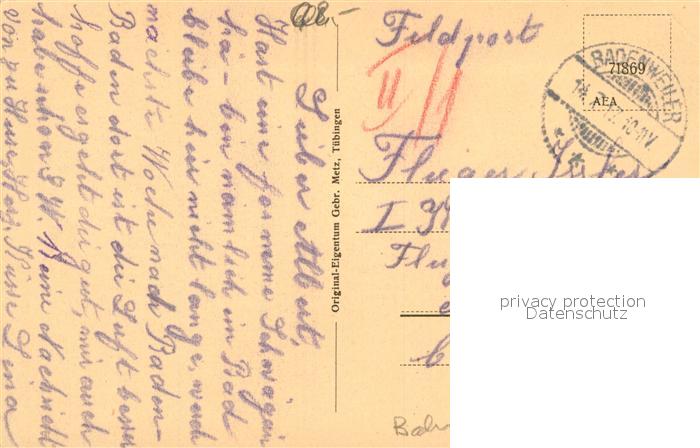 43511365 BADENWEILER BW Stadtpanorama mit Burgruine Kuenstlerkarte postalisch gelaufen Feldpostkarte Erhaltung siehe scans [FriedD77] Feldpostkarte alte Postkarte Frie Katcode 11110008315007