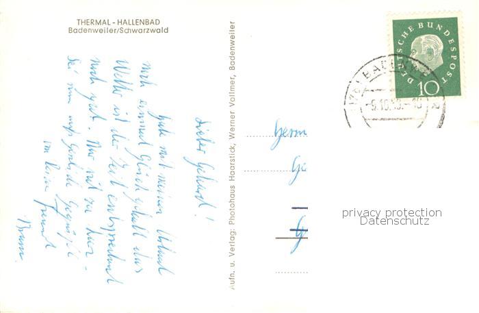 73763622 BADENWEILER BW Thermal Hallenbad postalisch gelaufen Erhaltung siehe scans [FriedD77] alte Postkarte Frie Katcode 11110008315007