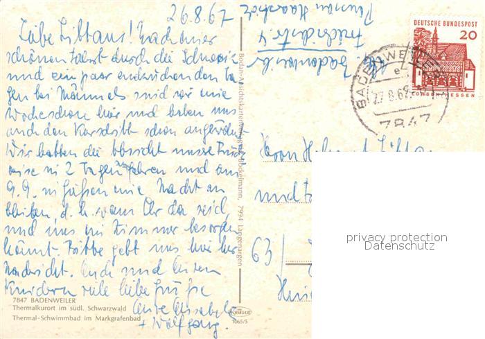 72762913 alte Postkarte BADENWEILER BW Thermal Schwimmbad postalisch gelaufen Erhaltung siehe scans [AndreD76] KatCode: 11110008315007