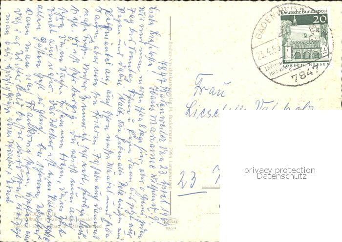 72370817 alte Postkarte BADENWEILER BW Thermal-Schwimmbad postalisch gelaufen Erhaltung siehe scans KatCode: 11110008315007