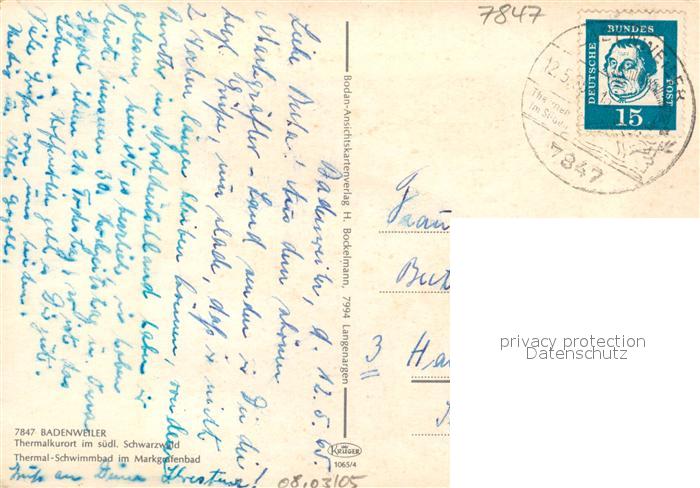 73061703 alte Postkarte BADENWEILER BW Thermal Schwimmbad im Markgrafenbad postalisch gelaufen Erhaltung siehe scans [WerneD78] KatCode: 11110008315007
