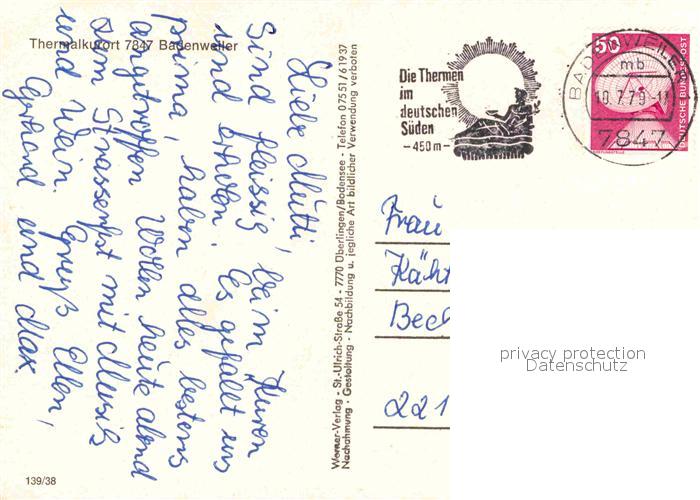 72756093 alte Postkarte BADENWEILER BW Thermalbad Brunnen Schlossruine postalisch gelaufen Erhaltung siehe scans [NatalD47] KatCode: 11110008315007