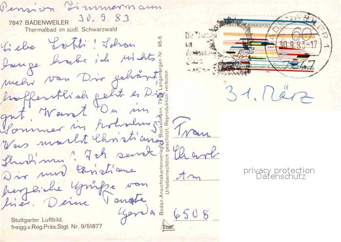 72751720 alte Postkarte BADENWEILER BW Thermalbad im Schwarzwald Fliegeraufnahme postalisch gelaufen Erhaltung siehe scans [FriedD77] KatCode: 11110008315007