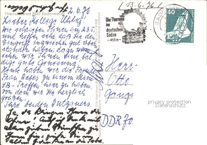 72534480 alte Postkarte BADENWEILER BW Thermalbad Ruine Kurhaus postalisch gelaufen Erhaltung siehe scans [AndreD76 kt121box] KatCode: 11110008315007