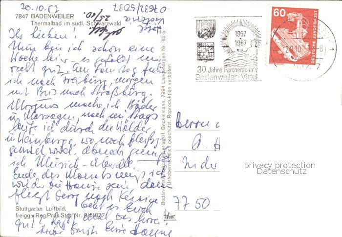 72470694 alte Postkarte BADENWEILER BW Thermalbad Schwarzwald Fliegeraufnahme postalisch gelaufen Erhaltung siehe scans KatCode: 11110008315007