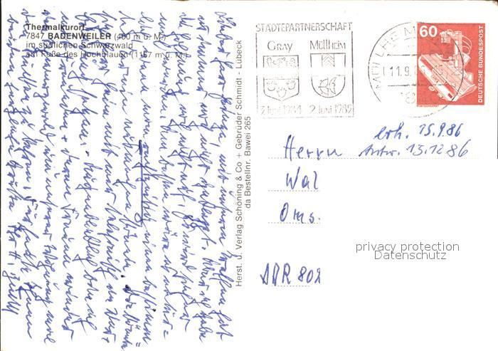 72370570 alte Postkarte BADENWEILER BW Thermalkurort Hochblauen postalisch gelaufen Erhaltung siehe scans KatCode: 11110008315007