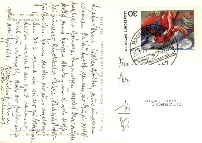 73758852 BADENWEILER BW Thermalkurort im Schwarzwald postalisch gelaufen Fliegeraufnahme Erhaltung siehe scans [FriedD77] Fliegeraufnahme alte Postkarte Frie Katcode 11110008315007