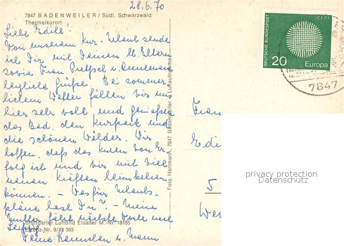 73710212 BADENWEILER BW Thermalkurort im Schwarzwald postalisch gelaufen Fliegeraufnahme Erhaltung siehe scans [FriedD77] Fliegeraufnahme alte Postkarte Frie Katcode 11110008315007