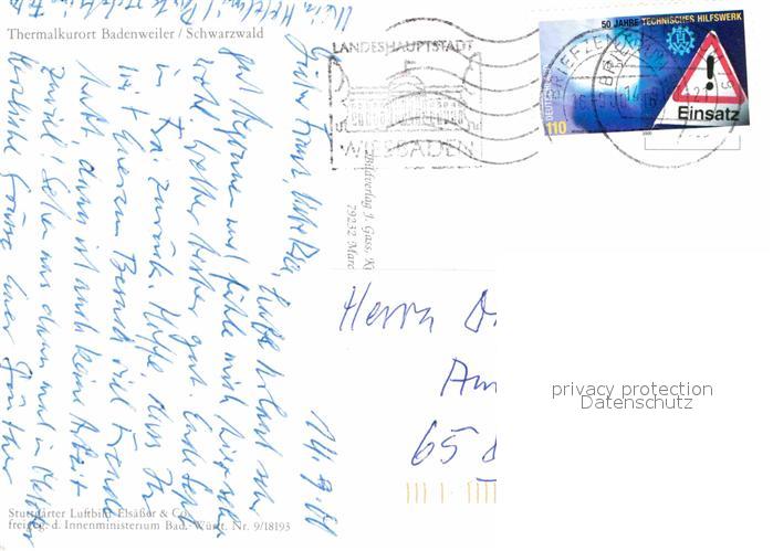 72868807 alte Postkarte BADENWEILER BW Thermalkurort im Schwarzwald postalisch gelaufen Erhaltung siehe scans [FriedD77] KatCode: 11110008315007