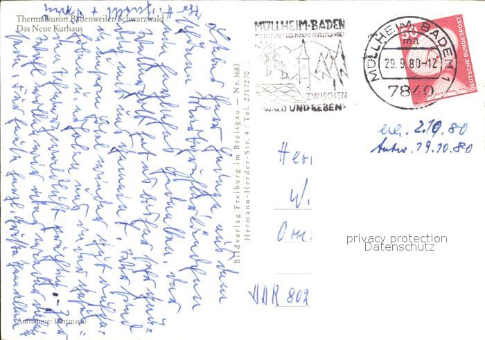 72370572 alte Postkarte BADENWEILER BW Thermalkurort neues Kurhaus postalisch gelaufen Erhaltung siehe scans KatCode: 11110008315007