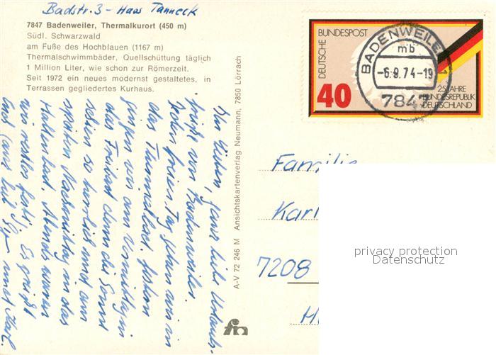 73686567 BADENWEILER BW Thermalkurort Schwarzwald Fliegeraufnahme postalisch gelaufen Erhaltung siehe scans [FriedD77] alte Postkarte Frie Katcode 11110008315007