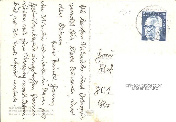 72372373 alte Postkarte BADENWEILER BW Thermalschwimmbad Markgrafenbad Kurort Schwarzwald postalisch gelaufen Erhaltung siehe scans KatCode: 11110008315007