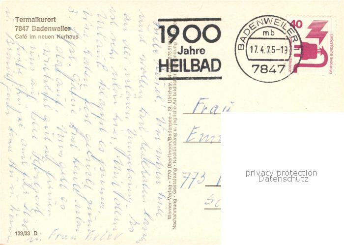 73541330 alte Postkarte Badenweiler Cafe im neuen Kurhaus postalisch gelaufen Erhaltung siehe scans [KathaD81] KatCode: 11110008315007