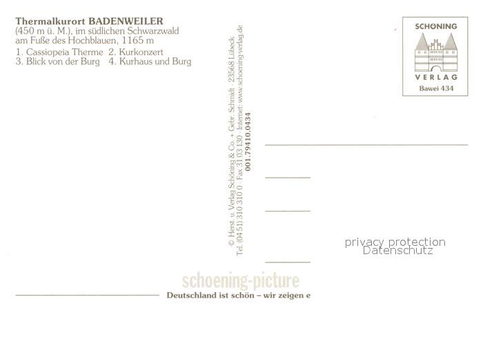 73211604 Badenweiler Cassiopeia-Therme Kurhaus Kurkonzert Burg postalisch nicht gelaufen Erhaltung siehe scans [PaolaD17] KatCode: 11110008315007
