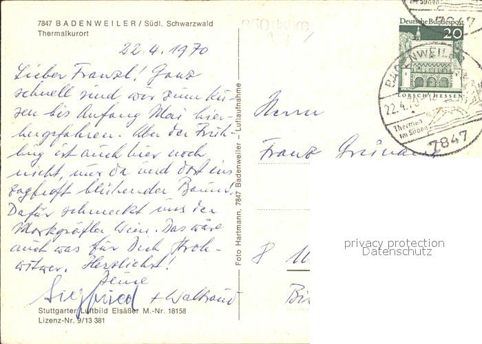 alte Postkarte Badenweiler Fliegeraufnahme postalisch gelaufen Erhaltung siehe scans