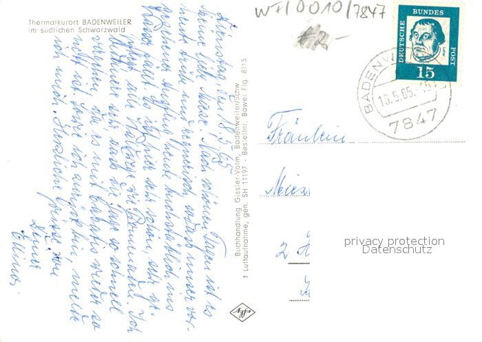 73161719 alte Postkarte Badenweiler Fliegeraufnahme postalisch gelaufen Erhaltung siehe scans [WerneD78] KatCode: 11110008315007