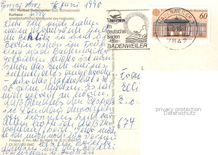 73540288 alte Postkarte Badenweiler Fliegeraufnahme mit Kurhaus postalisch gelaufen Erhaltung siehe scans [WerneD78] KatCode: 11110008315007