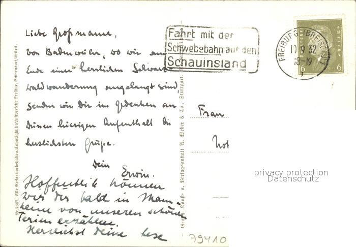 31729874 alte Postkarte Badenweiler Fliegeraufnahme Schloss Hausbaden postalisch gelaufen Erhaltung siehe scans KatCode: 11110008315007