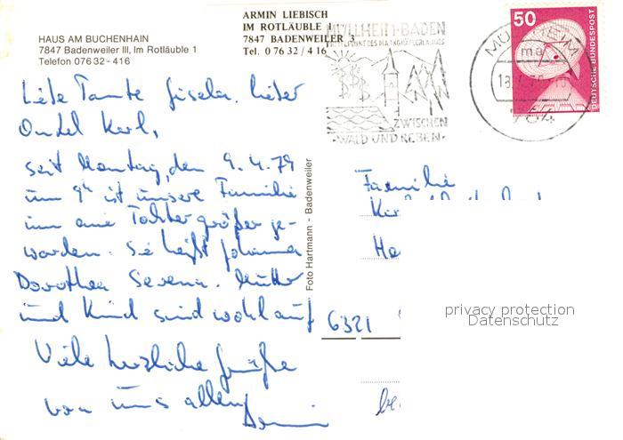 73167164 alte Postkarte Badenweiler Haus am Buchehain postalisch gelaufen Erhaltung siehe scans [WerneD78] KatCode: 11110008315007