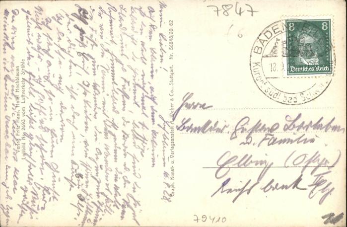 71026829 alte Postkarte Badenweiler Hotel Pension Hochblauen Fliegeraufnahme postalisch gelaufen KatCode: 11110008315007
