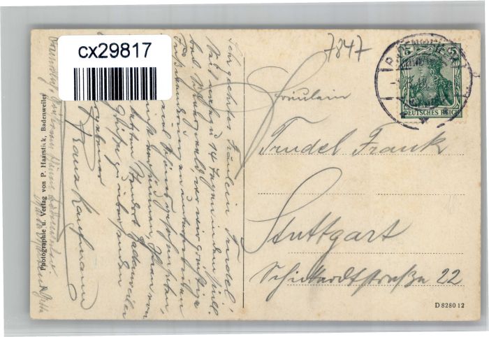30923937 alte Postkarte Badenweiler Hotel Pension Saupe postalisch gelaufen KatCode: 11110008315007