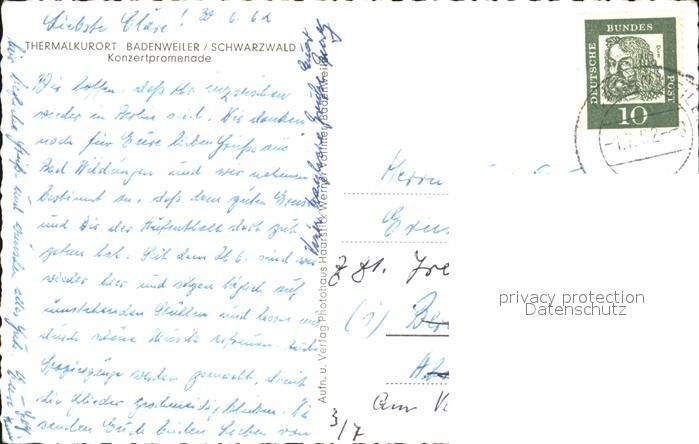 alte Postkarte Badenweiler Konzertpromenade Pavillon Thermalkurort postalisch gelaufen Erhaltung siehe scans