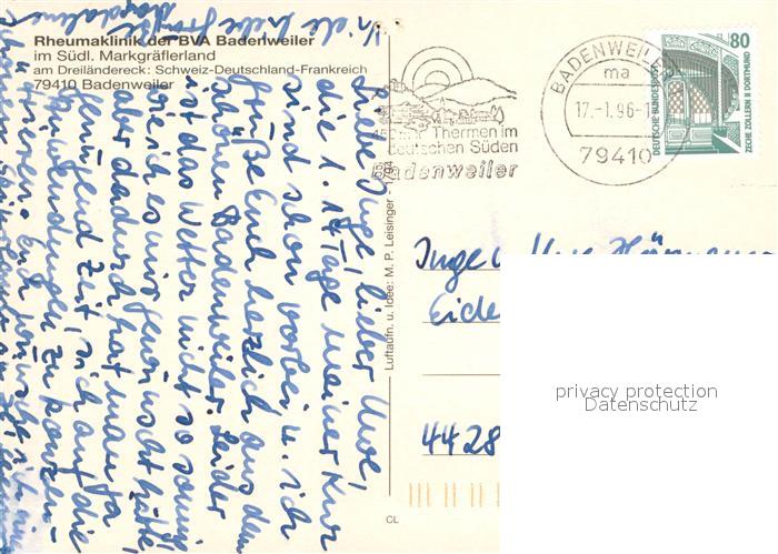 73636866 alte Postkarte Badenweiler Rheumaklinik der BVA Markgraeflerland Fliegeraufnahme postalisch gelaufen Erhaltung siehe scans [FriedD77] KatCode: 11110008315007