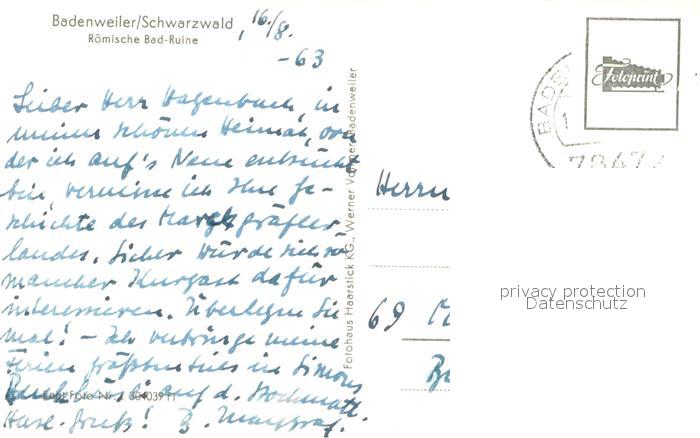 73624761 alte Postkarte Badenweiler R?mische Bad-Ruine postalisch gelaufen Erhaltung siehe scans [LiesaD40] KatCode: 11110008315007